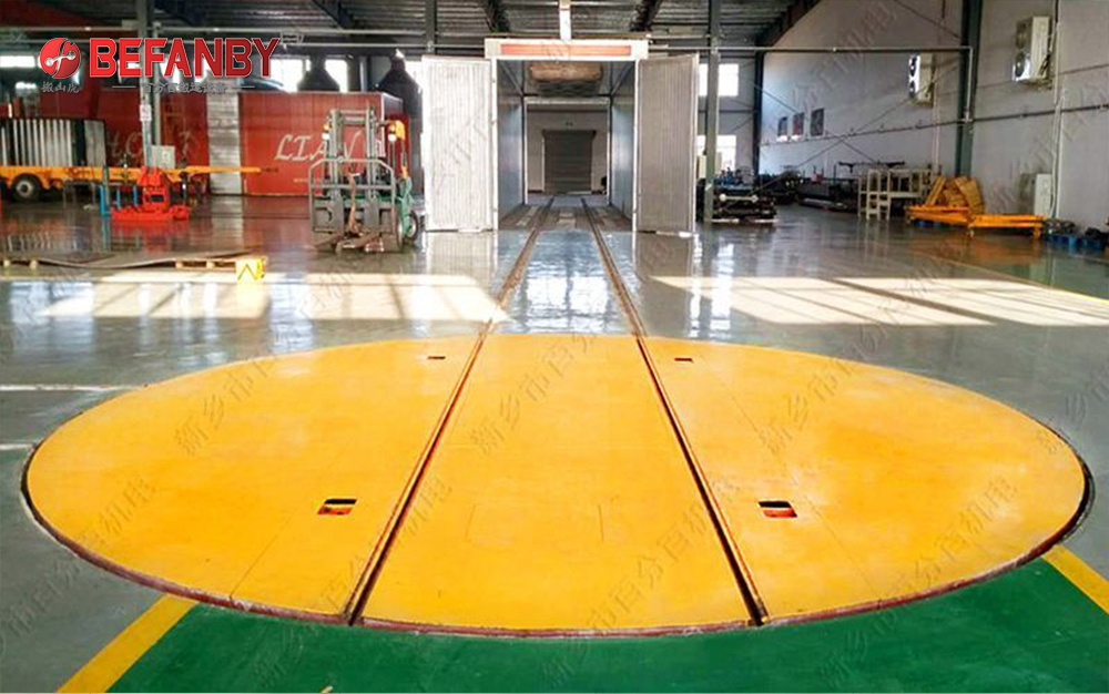 現(xiàn)在很多的工廠生產(chǎn)過程當中,有許多多地方需要的轉彎半徑過小或者沒法鋪設彎軌的情況或是拐角處,電動換軌轉盤非常適應這樣的工況。
