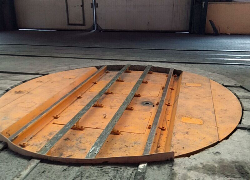 我公司生產(chǎn)的電動(dòng)換軌轉(zhuǎn)盤(pán)是一種能夠在90度轉(zhuǎn)彎的軌道上運(yùn)行的轉(zhuǎn)運(yùn)車(chē)。它的工作原理是:轉(zhuǎn)運(yùn)車(chē)運(yùn)行至電動(dòng)旋轉(zhuǎn)平臺(tái)上,通過(guò)手動(dòng)手動(dòng)或自動(dòng)旋轉(zhuǎn)電動(dòng)旋轉(zhuǎn)平臺(tái),與垂直軌道對(duì)接,使轉(zhuǎn)運(yùn)車(chē)可沿垂直軌道運(yùn)行,實(shí)現(xiàn)90度轉(zhuǎn)彎,它非常適用于裝備生產(chǎn)線(xiàn)的環(huán)形軌道、交叉軌道等工作場(chǎng)合。通過(guò)運(yùn)載車(chē)輛行駛到換軌轉(zhuǎn)盤(pán)上,轉(zhuǎn)盤(pán)轉(zhuǎn)過(guò)指定角度的軌道上,來(lái)實(shí)現(xiàn)任意角度交叉軌道的換軌操作,安裝自動(dòng)化定位裝置,實(shí)現(xiàn)平車(chē)平穩(wěn)的軌道對(duì)接,可通過(guò)自動(dòng)化定位裝置來(lái)調(diào)整對(duì)接軌道的角度來(lái)實(shí)現(xiàn)準(zhǔn)確對(duì)接,另外可以實(shí)現(xiàn)自動(dòng)化無(wú)人控制。