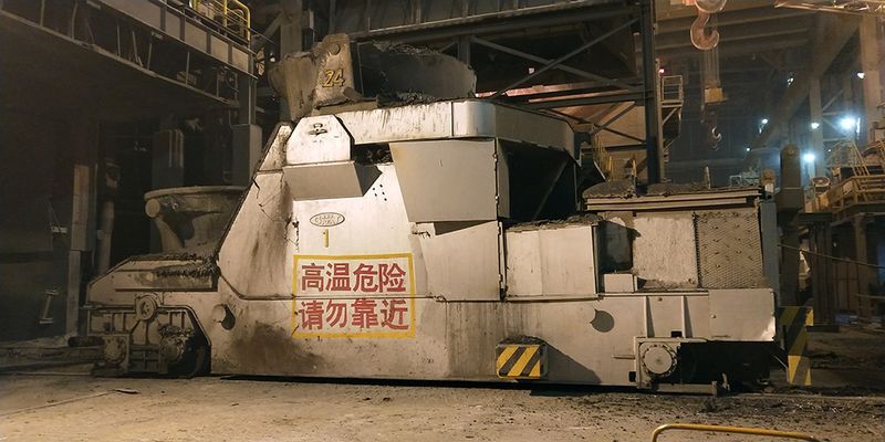 球化包軌道車(chē)采用電纜卷筒供電,電纜的一端接在地面電源上,另一端經(jīng)電動(dòng)平車(chē)的鐵夾裝置引入平車(chē)。該型電動(dòng)平車(chē)的特點(diǎn)是臺(tái)面高度較低,裝卸重物容易,但運(yùn)行距離不能太長(zhǎng),一般不能超過(guò)100m,過(guò)長(zhǎng)容易纏繞電纜。雖然使用距離受限,但是使用時(shí)間不受限。一般情況下,為了避免電纜磨損,會(huì)安裝拖鏈進(jìn)行保護(hù)。