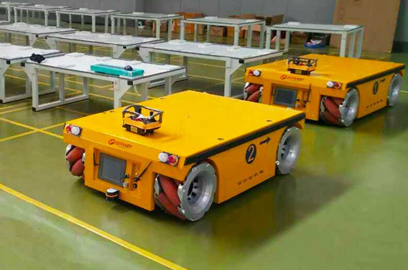 工業(yè)應(yīng)用中不需駕駛員的搬運車,以可充電之蓄電池為其動力來源。一般可透過電腦來控制其行進(jìn)路線合并圖冊?以及行為,或利用電磁軌道(electromagnetic path-following system)來設(shè)立其行進(jìn)路線,電磁軌道黏貼於地板上,無人搬運車則依循電磁軌道所帶來的訊息進(jìn)行移動與動作。